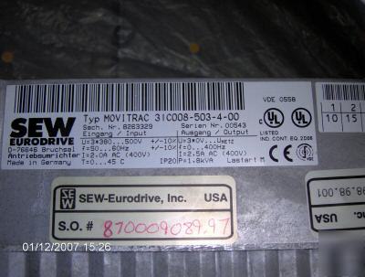We are offering this excellent vector drive by SEW Eurodrive. Rated at 1 hp at 460 volt, this drive also has gear capability.