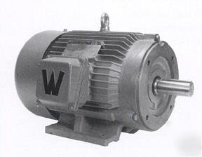 New 25 HP electric motor. 1200 rpm, 208-230/460 voltage, 3 phase. 324TC frame. Cast iron frame and mounting base, Class F winding, premium grade ball bearings, NEMA C flange, V-ring shaft seals, TEFC enclosure. High efficiency, CSA certified, ISO9001, CC006A standards. Worldwide Electric part number WWE25-12-324TC. 2 year