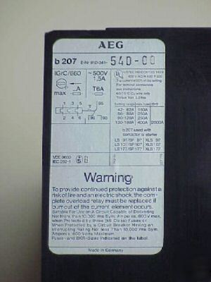 AEG Type B207 – Overload Relay – Relay Setting Range (Amps) 120 - 180. Relay removed from a brand new air compressor and is in nearly new condition.