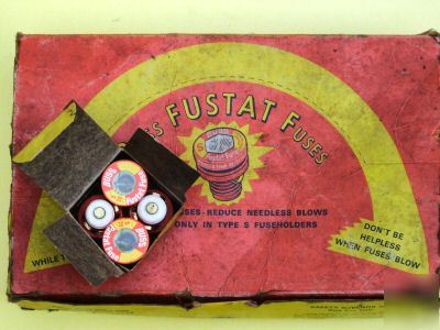 UP FOR SALE IS THE BUSS FUSTAT FUSES, S 20 AMP. TOTAL OF 60 FUSES, ONE CASE. ALL ARE IN USEABLE SHAPE AND ARE UNDAMAGED, OR PREUSED. BOXES DO HAVE A MUSTY SMELL TO THEM, BUT THEY HAVE BEEN IN STORAGE IN THE SHED. THIS WOULDN'T EFFECT THE USE OF THEM BUT MAY EFFECT THE COLLECTABILITY OF THE BOXES.